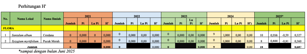 H’ Indeks Program Optimasi Pertumbuhan Pohon Cendana dengan Menggunakan PUSPANG (Pupuk Sisa Pangan) dan Program RED-SPROUT : Red Syzygium Propagation Outreach