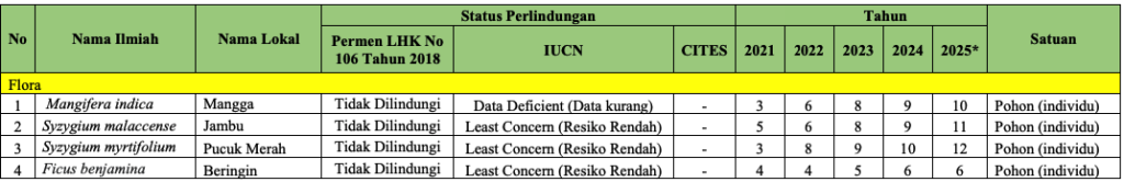 Berdasarkan hasil sensus flora pada program Pengembangan Taman Keanekaragaman Hayati Flora Endemik Indonesia dan Lokal diperoleh data sebagai berikut: