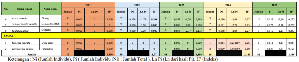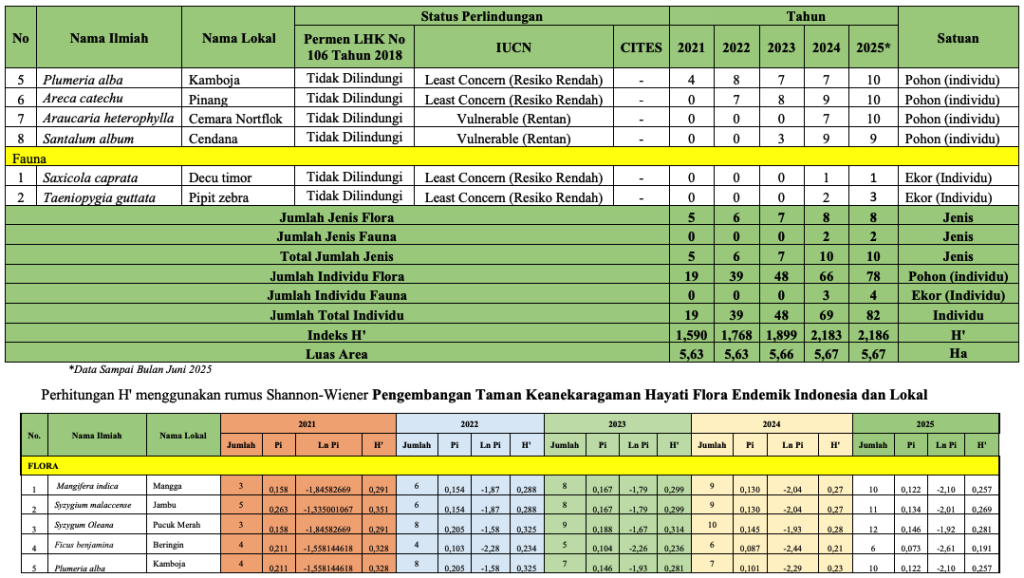 H’ Indeks Program Pengembangan Taman Keanekaragaman Hayati Flora Endemik Indonesia dan Lokal