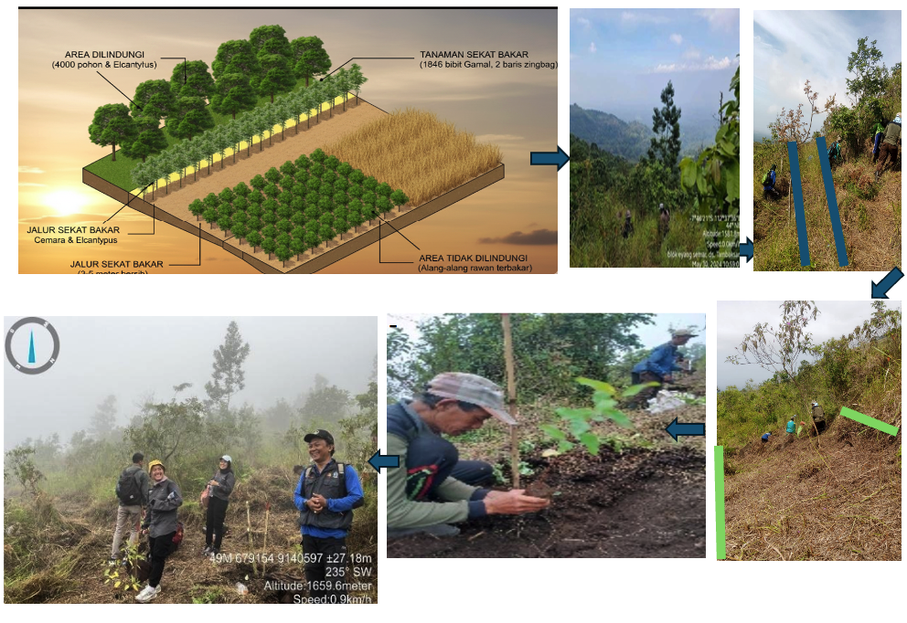 Untuk mengatasi risiko tinggi kebakaran di area yang didominasi alang-alang, program ini mengimplementasikan inovasi "Sekat Bakar Produktif dan Ekologis". Inovasi ini diwujudkan dengan menanam 1.846 bibit Gamal (Gliridia sepium) dalam dua baris di sekeliling area tanam.