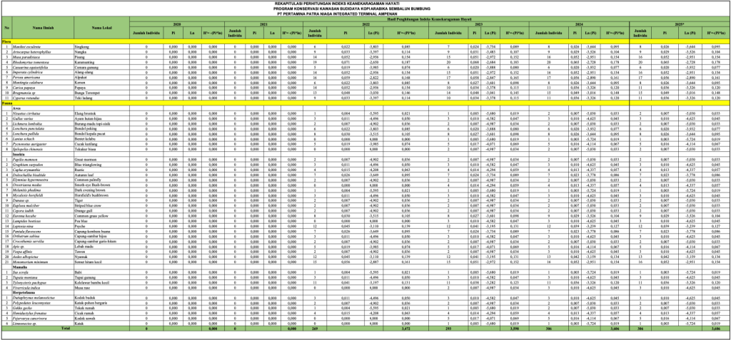 - Perhitungan data hasil monitoring dan Indeks Keanekaragaman Hayati Shannon-Wiener