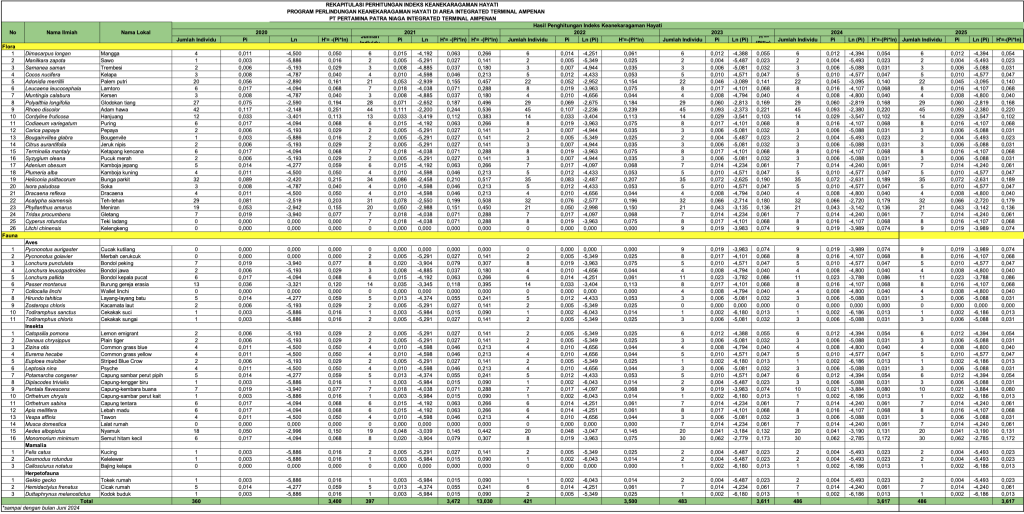 2. Perhitungan data hasil monitoring dan Indeks Keanekaragaman Hayati Shannon-Wiener